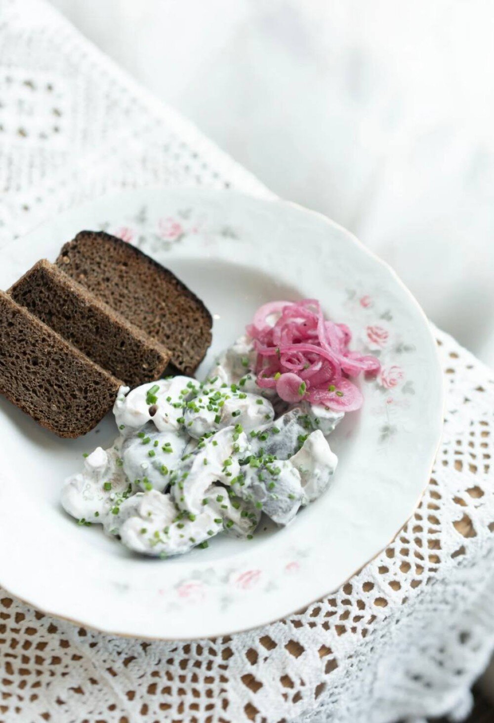 Хрустящие, маринованные грусди в сметанном соусе, дополненные маринованным красным луком, интересное и яркое сочетание под любое из горячих блюд