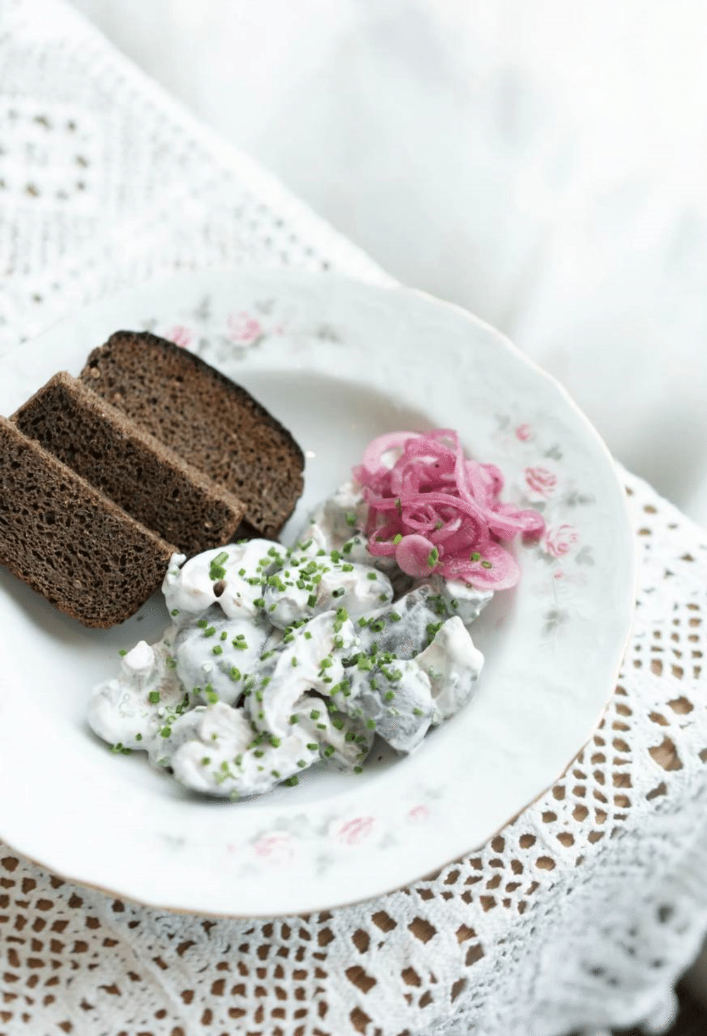 Сельдь пряного посола, с картофелем и маринованным луком
